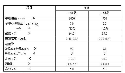 粉狀活性炭技術(shù)參數(shù):